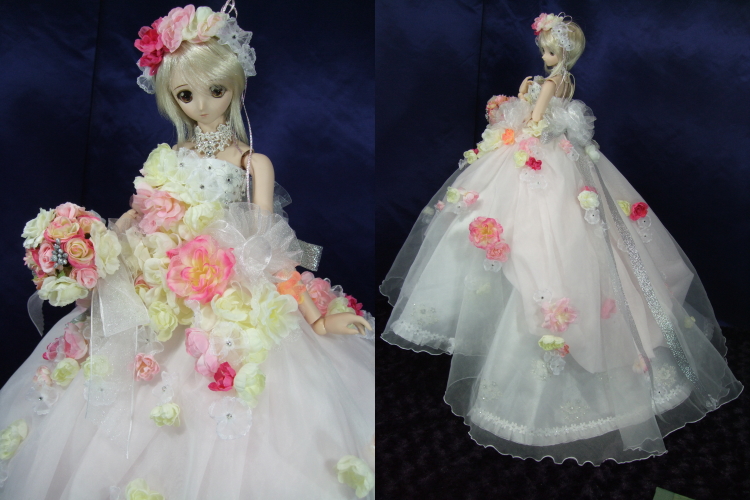 ウェスト部分には太めのオーガンジーフラワーの飾りとオーガンジーリボンを付けてみたり